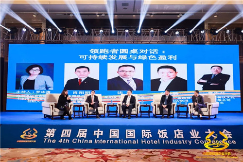 在綠色領跑者環節,優尼華盛(香港)董事總經理趙然分享“綠色年度報告《2019全國住宿業綠色發展白皮書》”,彭潤酒店咨詢公司(上海)有限公司創始人羅冰清(主持人)、全國綠色飯店工作委員會常務副理事長肖陽明、昆明花之城豪生酒店總經理沈翊、希爾頓全球中國南部海南地區北區聯盟總經理孫金鵬、重慶景興餐飲文化管理有限公司董事長曹先開就可持續發展與綠色盈利進行圓桌分享。